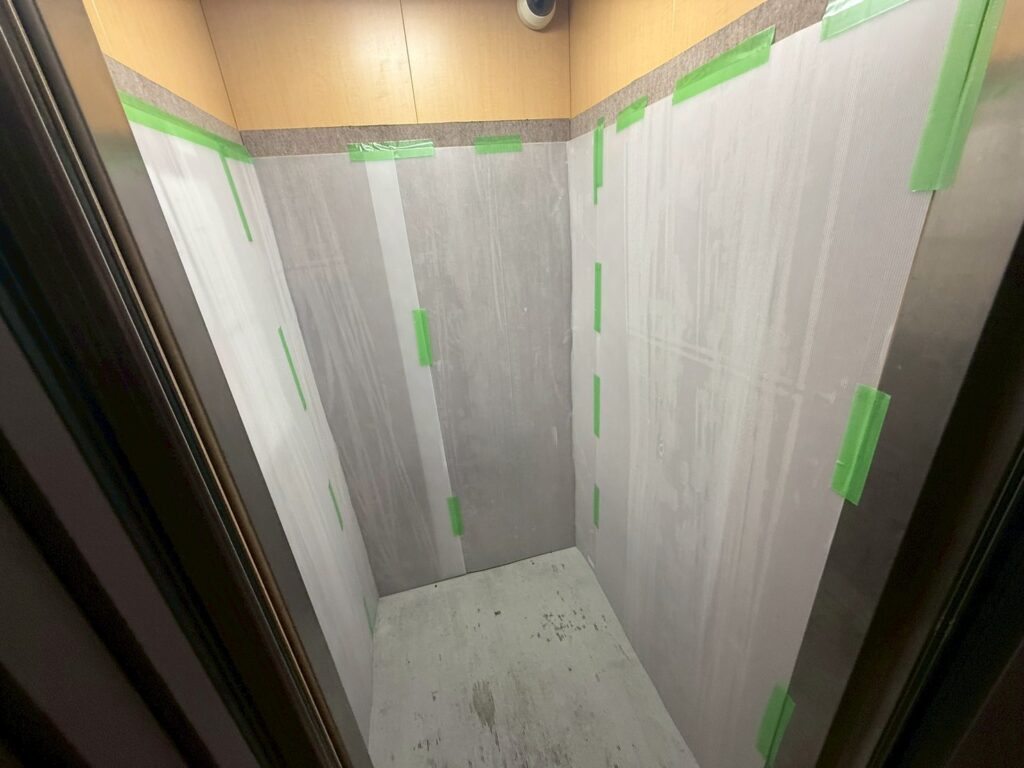 エレベーター内の養生作業写真