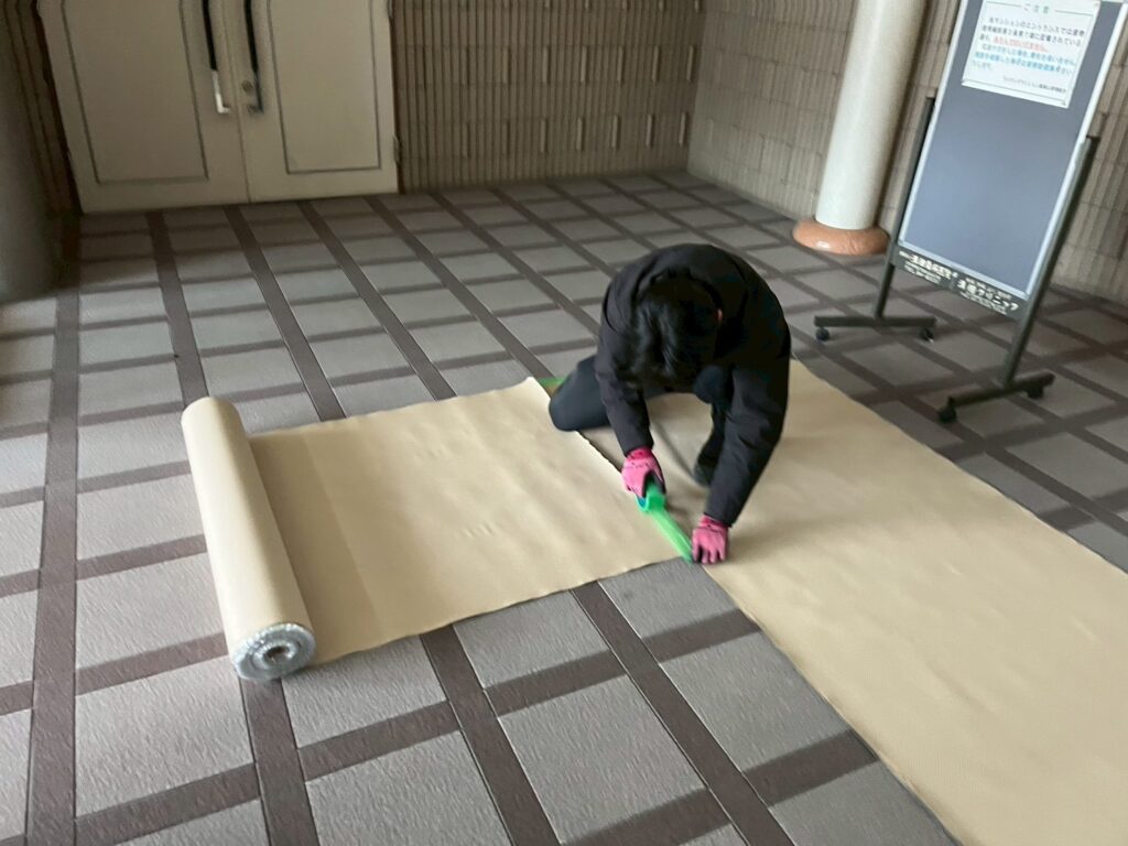 廊下の養生作業写真