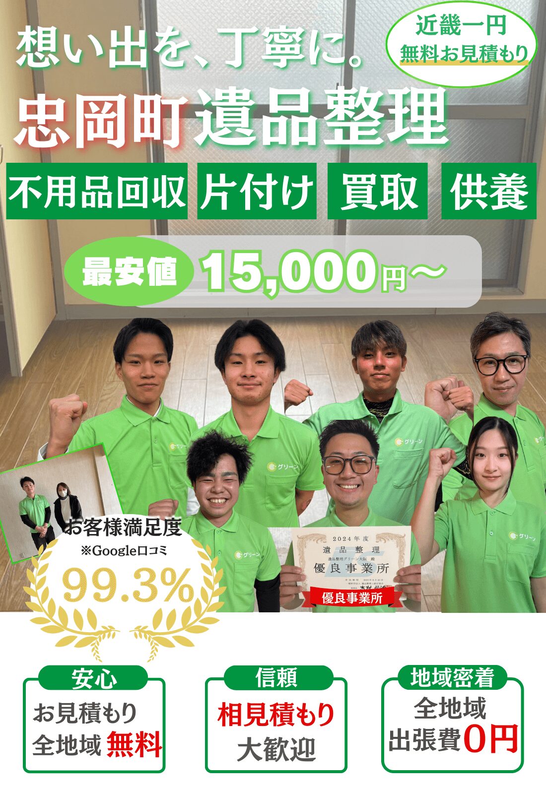 忠岡町で遺品整理をお考えなら、まずは地域密着の遺品整理グリーン忠岡にご相談ください。